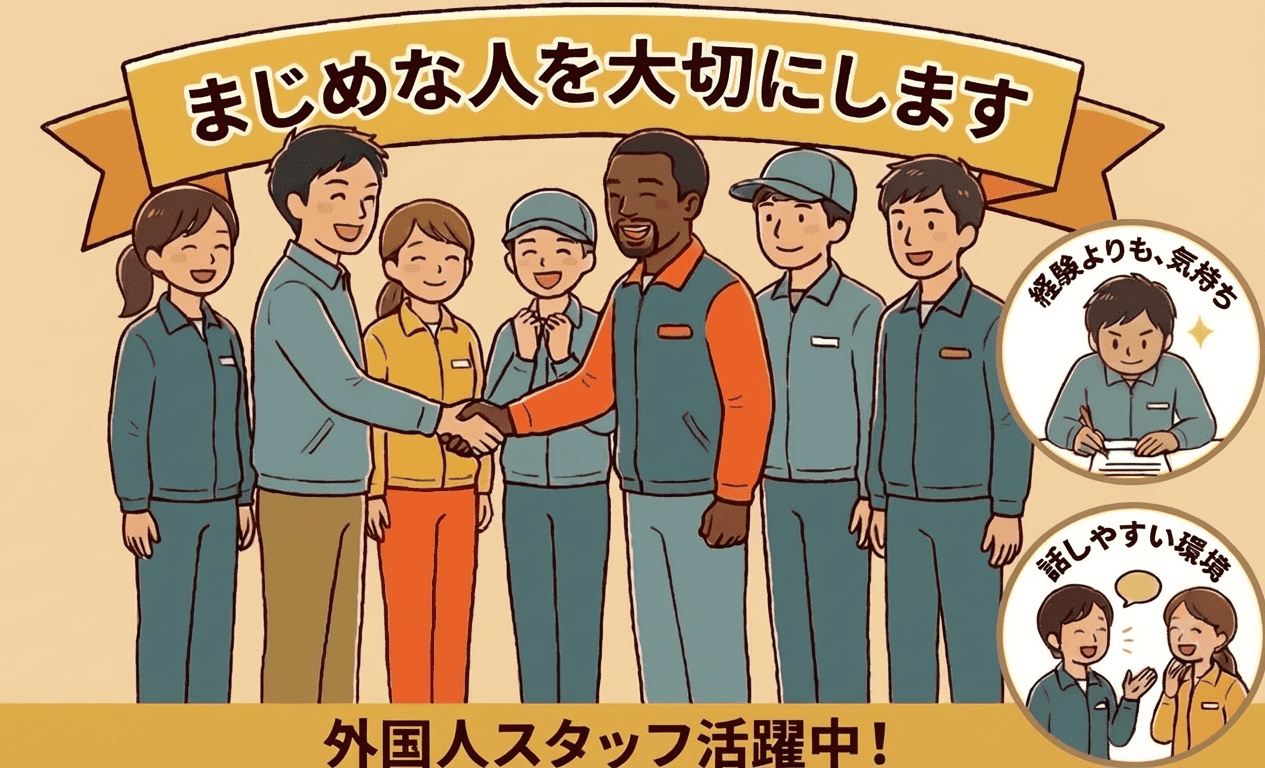 経験よりも、まじめに働く気持ちを大切にします。 スタッフ同士の仲がよく、話しやすい職場です。 外国人スタッフもたくさん活躍しています。