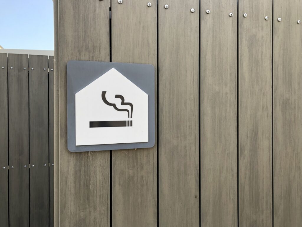 日本は、世界の中でもたばこを吸える場所がとても少ない国です。 外でたばこを吸いたくなったら、まず周りを見て**「No Smoking(禁煙)」**のマークや「火気厳禁」の表示がないか確認してください。わからないときは、恥ずかしがらずに「たばこを吸える場所はどこですか?」と同僚に聞いてみましょう。